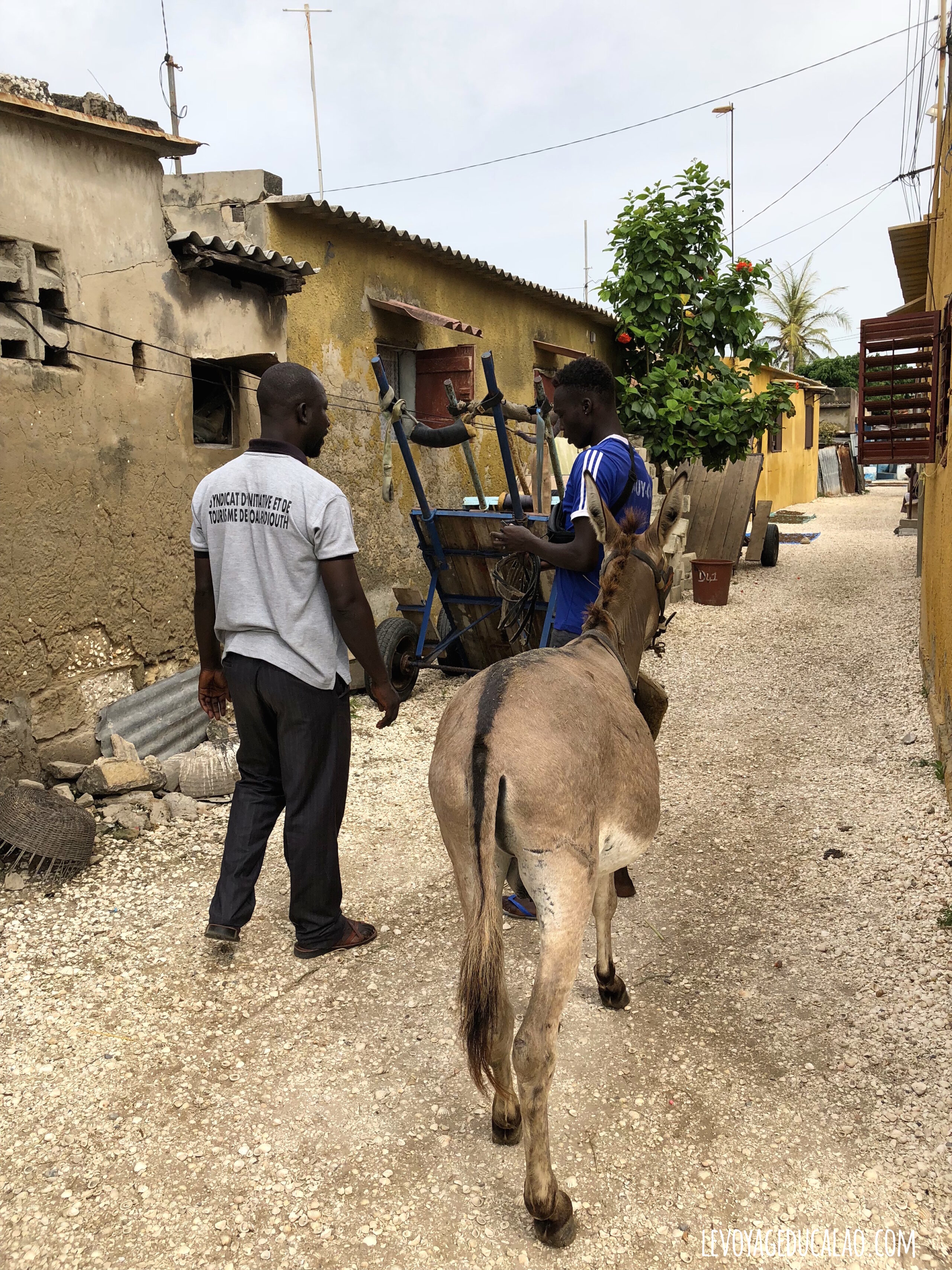 L’île est accessible soit en pirogue soit à pied, via la passerelle en bois de 500 m inaugurée en 2002. A marée basse, il paraît qu’elle surplombe le terrain de foot.
