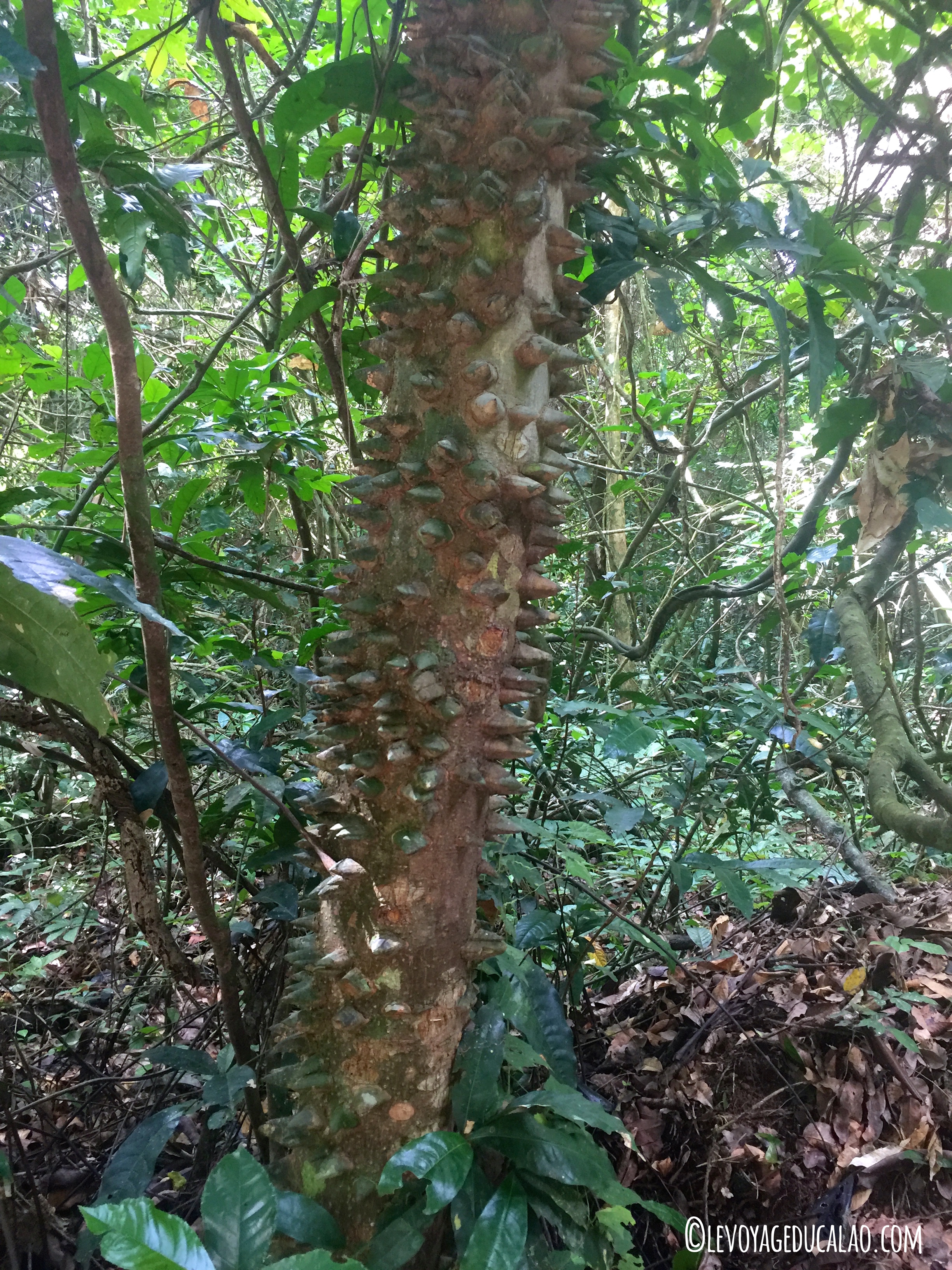 Pour autant, la randonnée fut agréable. La végétation est très dense. La forêt d’Azagny est réputée pour sa biodiversité, notamment sa riche population de lépidoptères … autrement dit de papillons ! D’après notre guide, elle abrite aussi beaucoup d’oiseaux, des singes, des potamochères, des buffles, même des éléphants … sous réserve que ces espèces n’aient pas été exterminées par le braconnage. Le mystère reste entier, nous n’avons croisé aucun de ces animaux. Il faut dire qu’avec nos 2 mini-râleurs, difficile de progresser en toute discrétion …