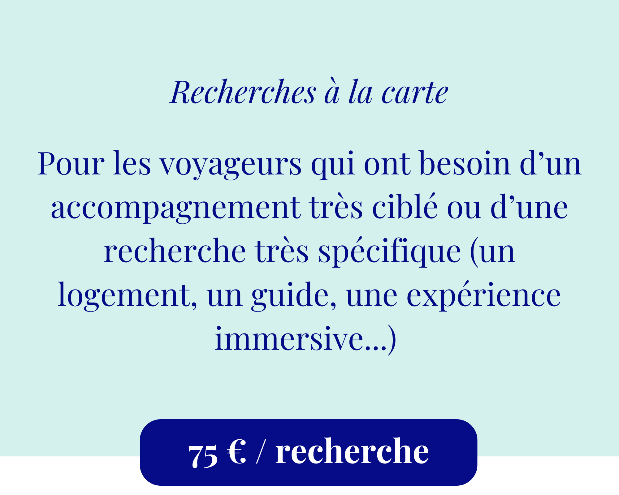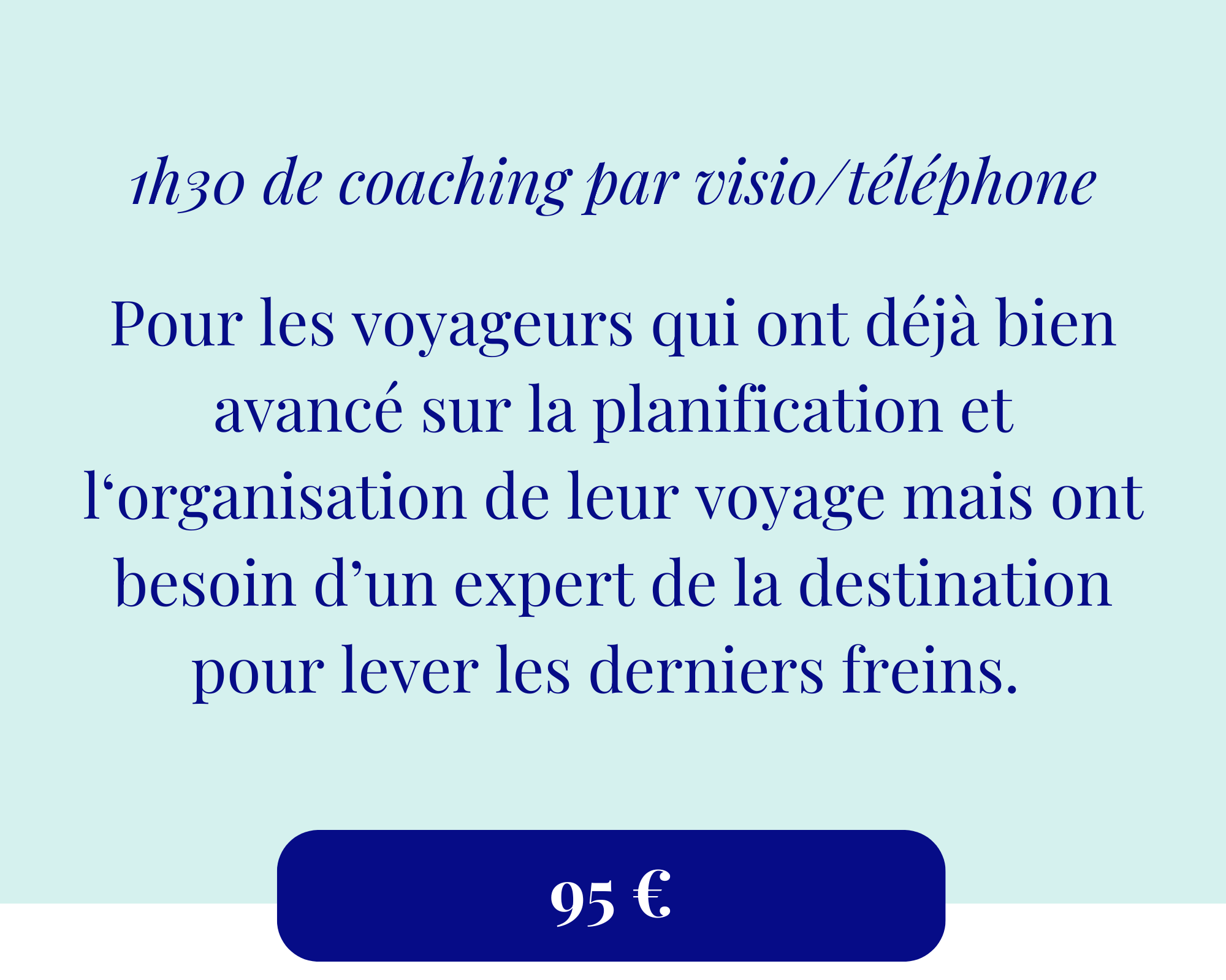 Si vous ne savez pas où partir ou si vous avez juste besoin d’un coaching pour vous aider à optimiser votre itinéraire ou encore trouver des activités originales et immersives, je peux également vous conseiller. Mes services de Travel Planner Afrique sont à la carte et totalement personnalisables !